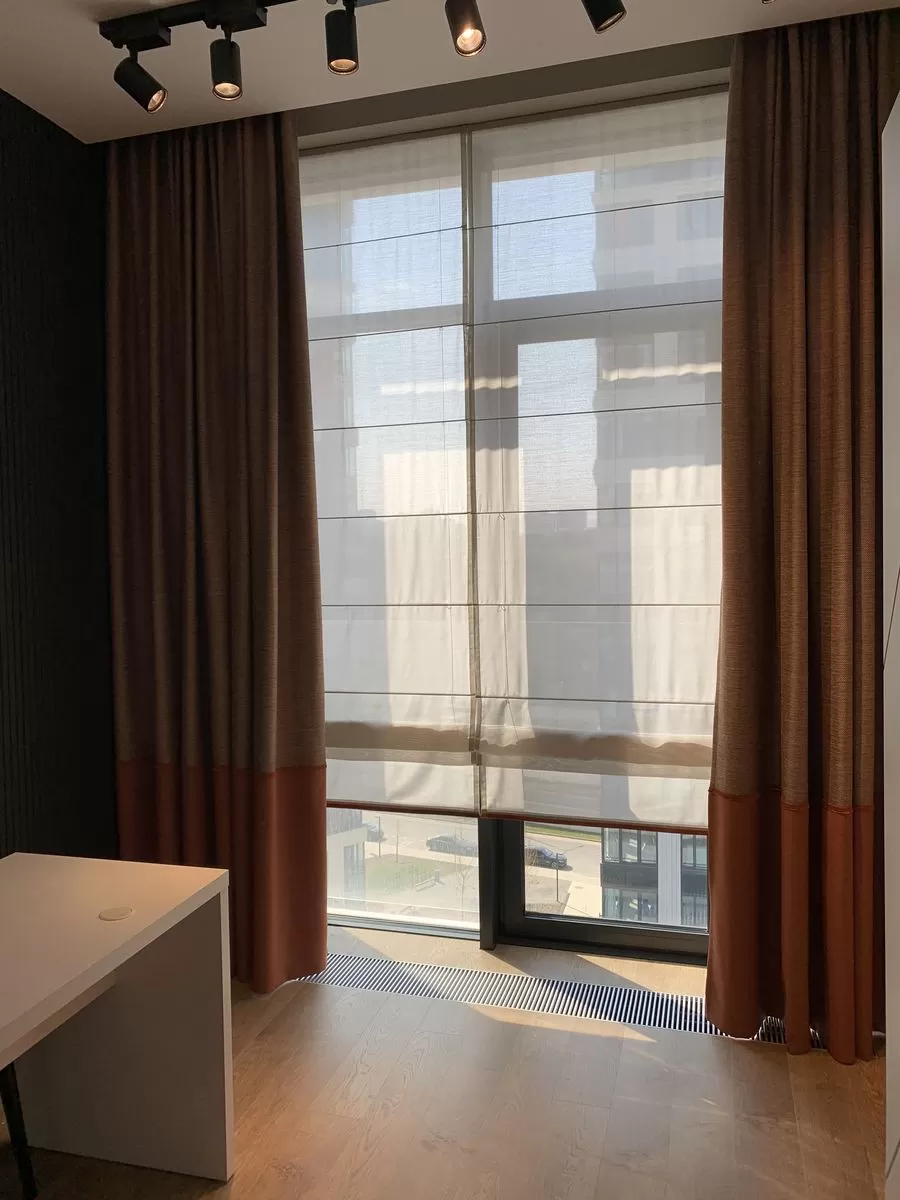 Прозрачные римские шторы мягко фильтруют дневной свет, обеспечивая визуальный комфорт, но не затемняя пространство. Благодаря римскому механизму, шторы легко регулируются по высоте и остаются аккуратными как в сложенном, так и в опущенном состоянии.