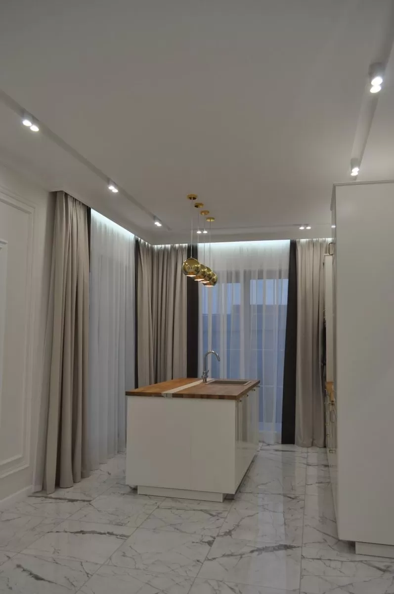 Портьеры из плотного материала с контрастной обтачкой по периметру формируют аккуратные драпировки, визуально структурируют пространство и служат стильным акцентом в интерьере.