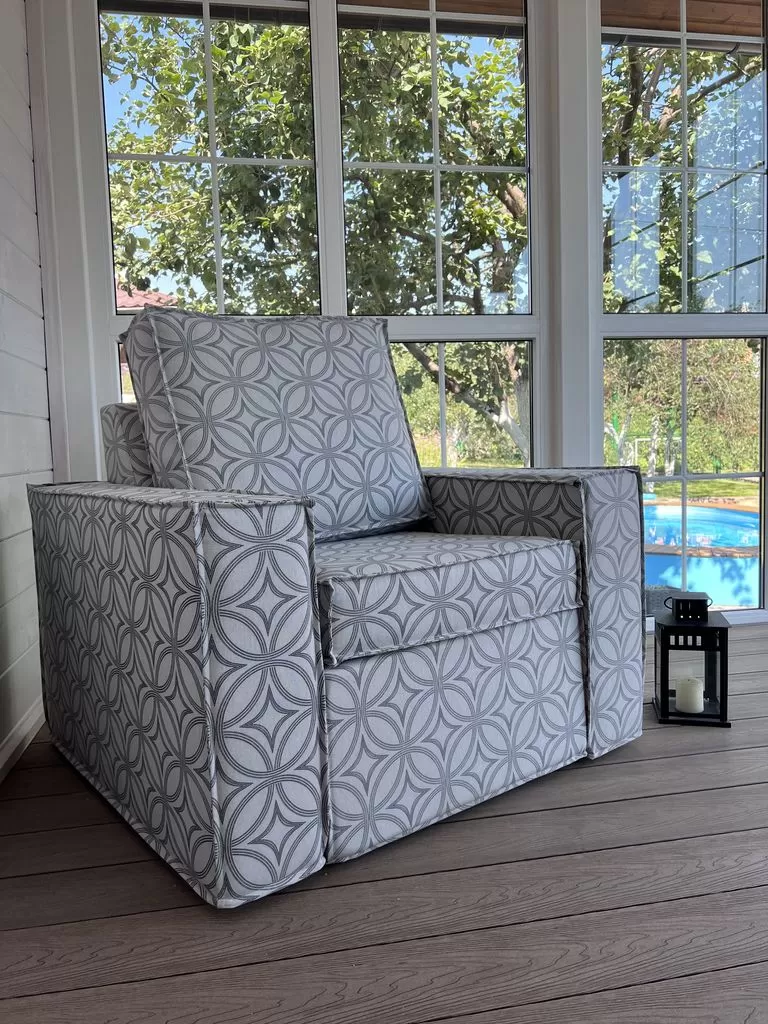 Создайте уютную и стильную зону отдыха в беседке, на веранде или террасе с комплектом мягкой мебели из влагоотталкивающей ткани. Диван и кресла разработаны специально для уличного использования — они устойчивы к влаге, выгоранию и сохраняют привлекательный внешний вид в течение всего сезона.