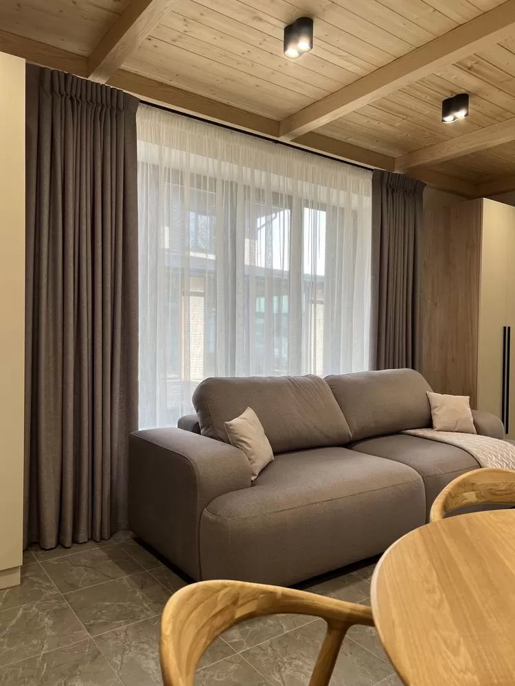 При выборе штор на открытую веранду ориентироваться нужно, в первую очередь, на их надежность. Не стоит сбрасывать со счетов такой фактор как сезонность. В случае если пользоваться верандой нужно будет зимой, идеальным вариантом станут пластиковые модели, которые не только будут защитой от солнечных лучей, но и не пропускают тепло. Летом легкие шторы из вуали или иных простых тканей будут вполне уместны.