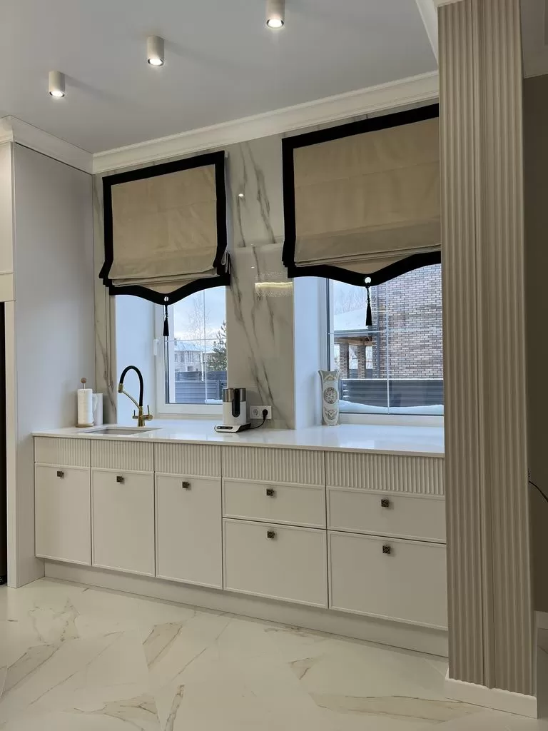 Римская штора с обтачкой не только украшает кухонное окно, но и делает пространство более организованным, светлым и уютным. Отличное решение для тех, кто ценит практичность без ущерба для эстетики.